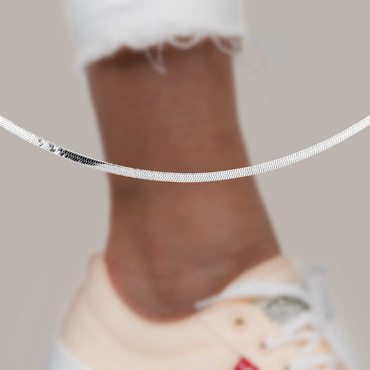Tobillera con diseño plano, en acero inoxidable de la mejor calidad (316L).