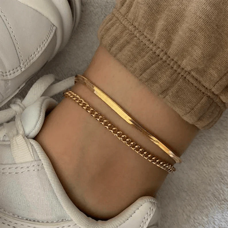 La tobillera «Cleopatra 4MM» es una de nuestras joyas nuevas con más personalidad. Su diseño es sencillo, combinando lÃneas planas en una joya ideal para los dÃas de verano.