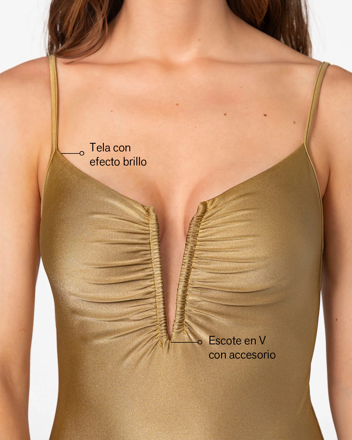 Un diseño espectacular, que te hará literalmente brillar. Este traje de baño entero con escote en V profundo, se volverá tu nueva pieza playera favorita por sus detalles inesperados y toques sexies. Una prenda versátil y visualmente armónica que se verá muy bien tanto como traje de baño o como body exterior. Además, sus cargaderas son ajustables para que las adaptes a tu cuerpo y te sientas muy cómoda siempre que lo uses. Llévalo a todos tus viajes y tendrás 2 prendas en 1: un traje de baño sofisticado y un body elegante ideal para las noches de fiesta.