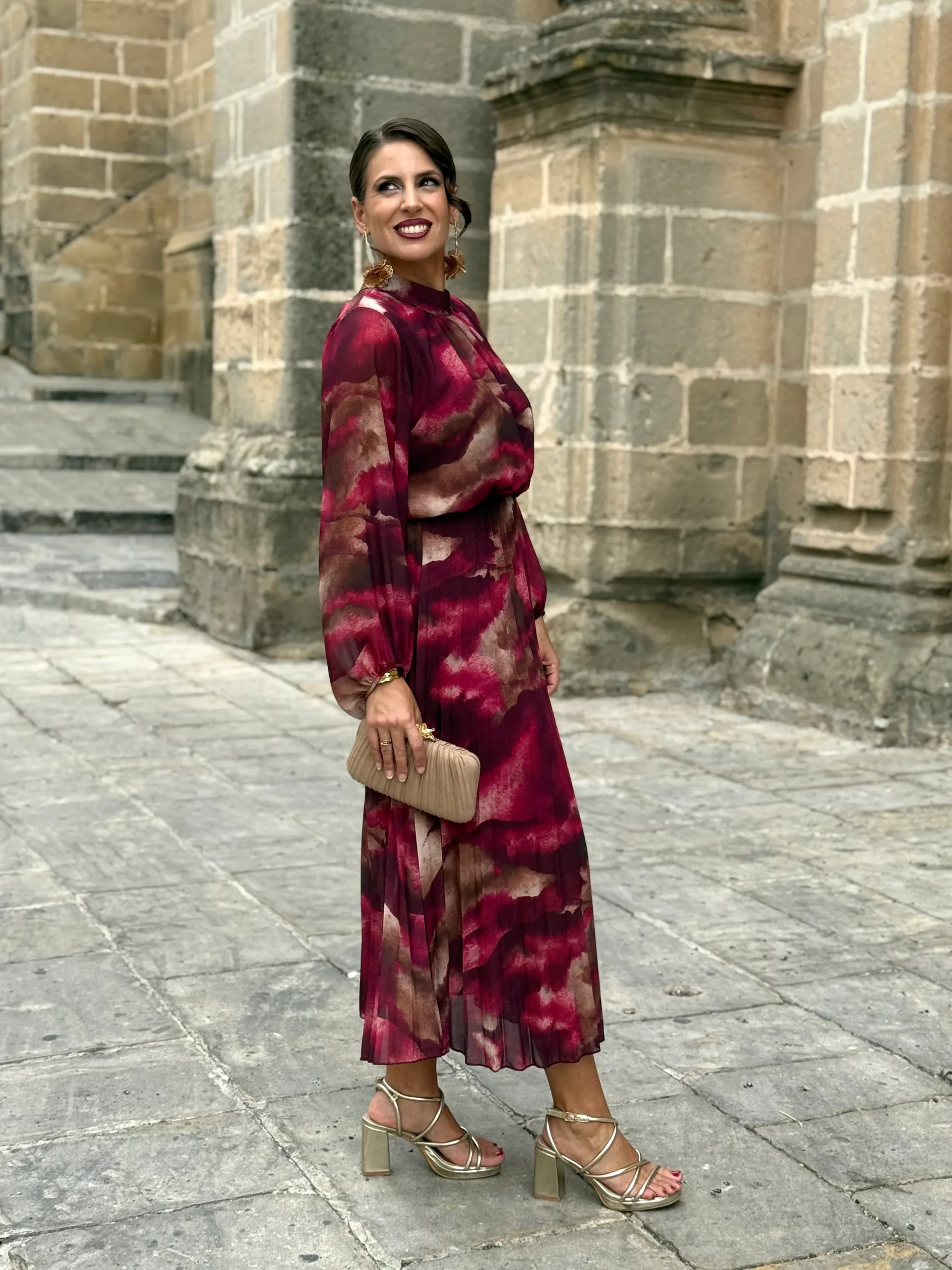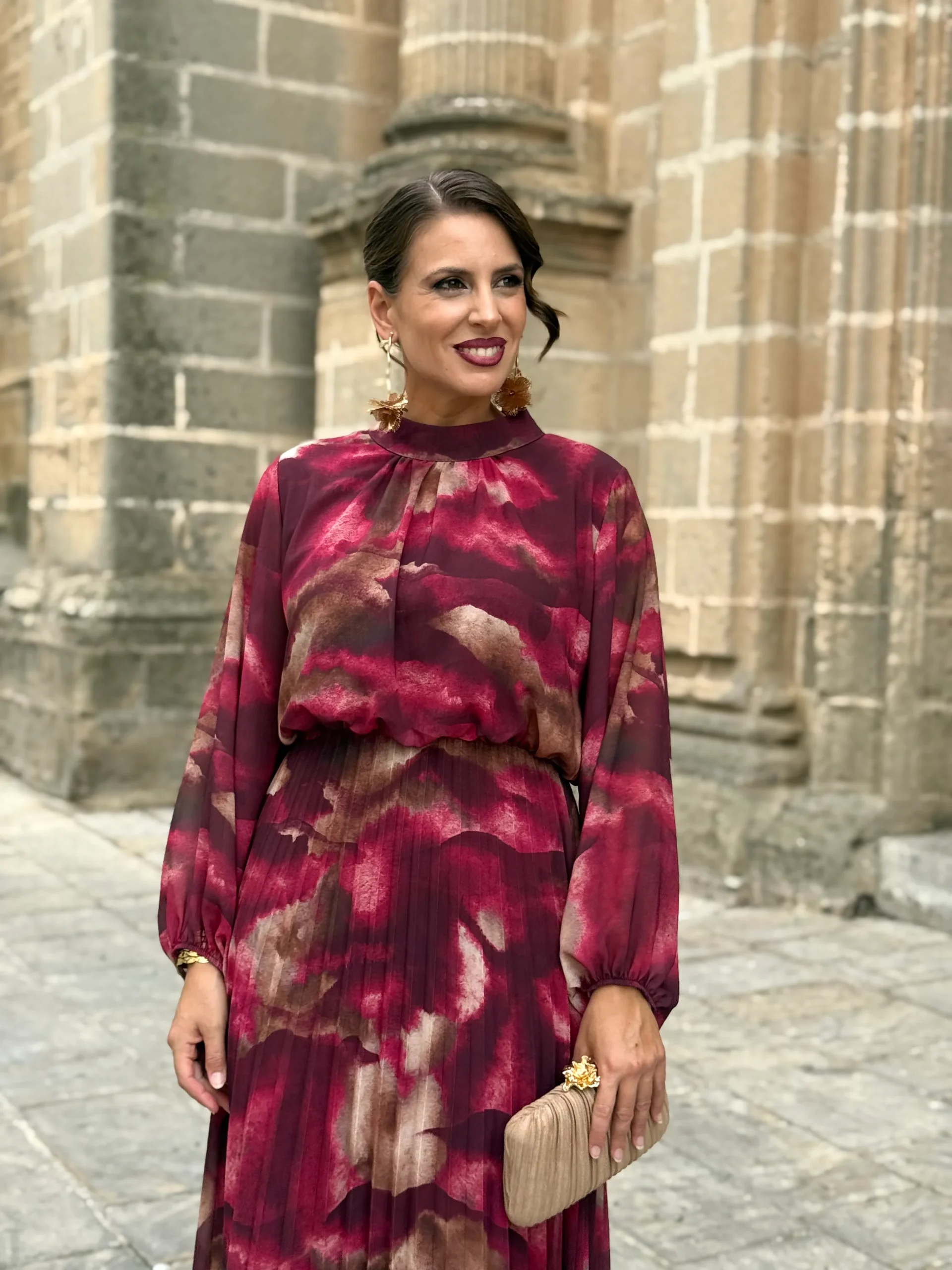 El tono granate es uno de los colores más favorecedores para invitadas, perfecto tanto para eventos de dÃa como de tarde.