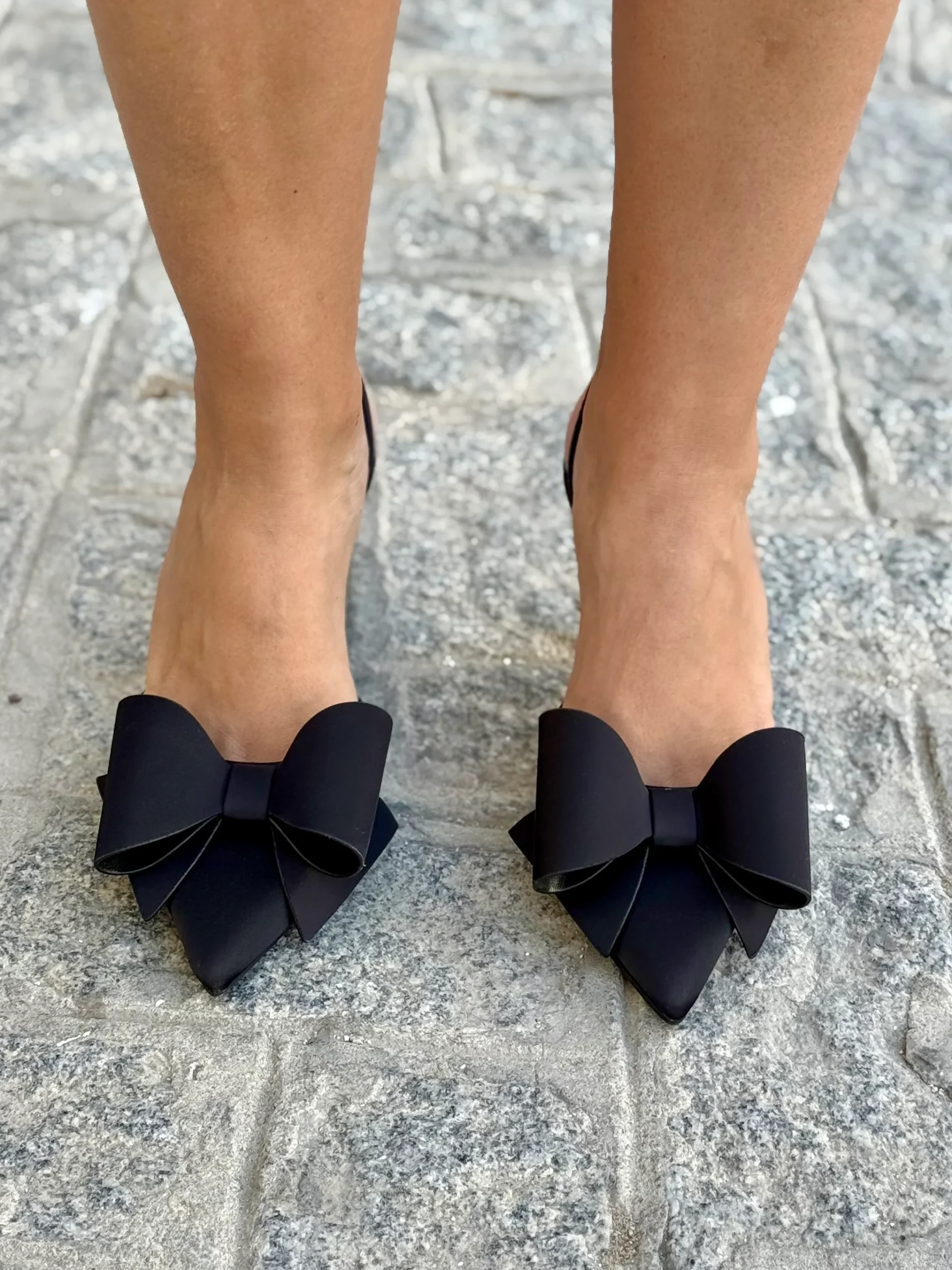 El color negro, atemporal y vers谩til, los convierte en un b谩sico de fondo de armario, ideales para combinar con vestidos de fiesta, trajes de chaqueta, faldas midi o pantalones elegantes. El acabado satinado y el detalle del lazo los hacen sofisticados y femeninos, perfectos para bodas, comuniones, bautizos o cenas especiales.
