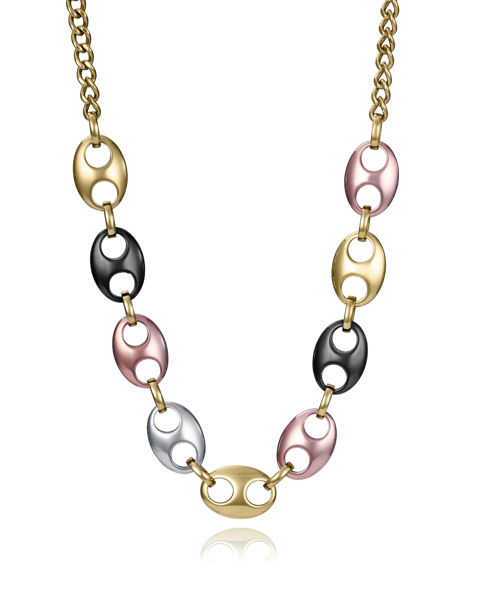 Collar Acero E Ip Dorado Eslabones Sra Fn