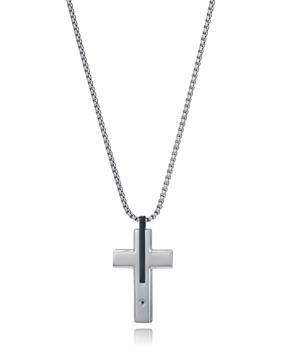 Collar Acero E Ip Negro Cruz Circ Sr Fashion