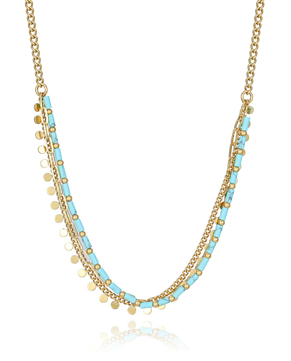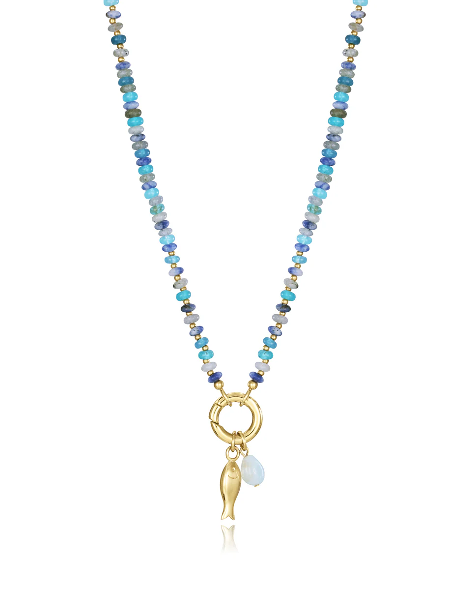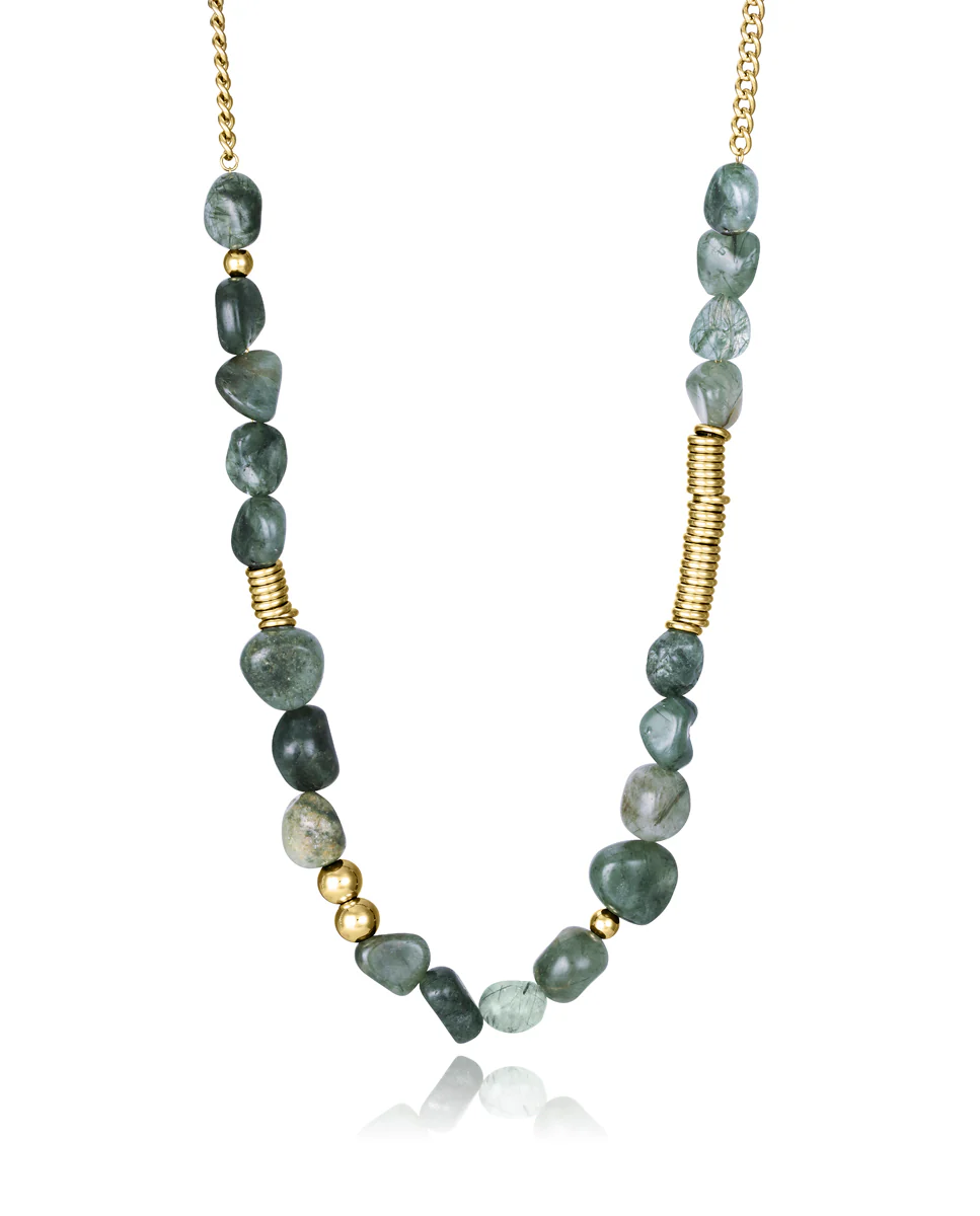 Collar Acero Ip Dorado Y Piedras Nat Sra Fn