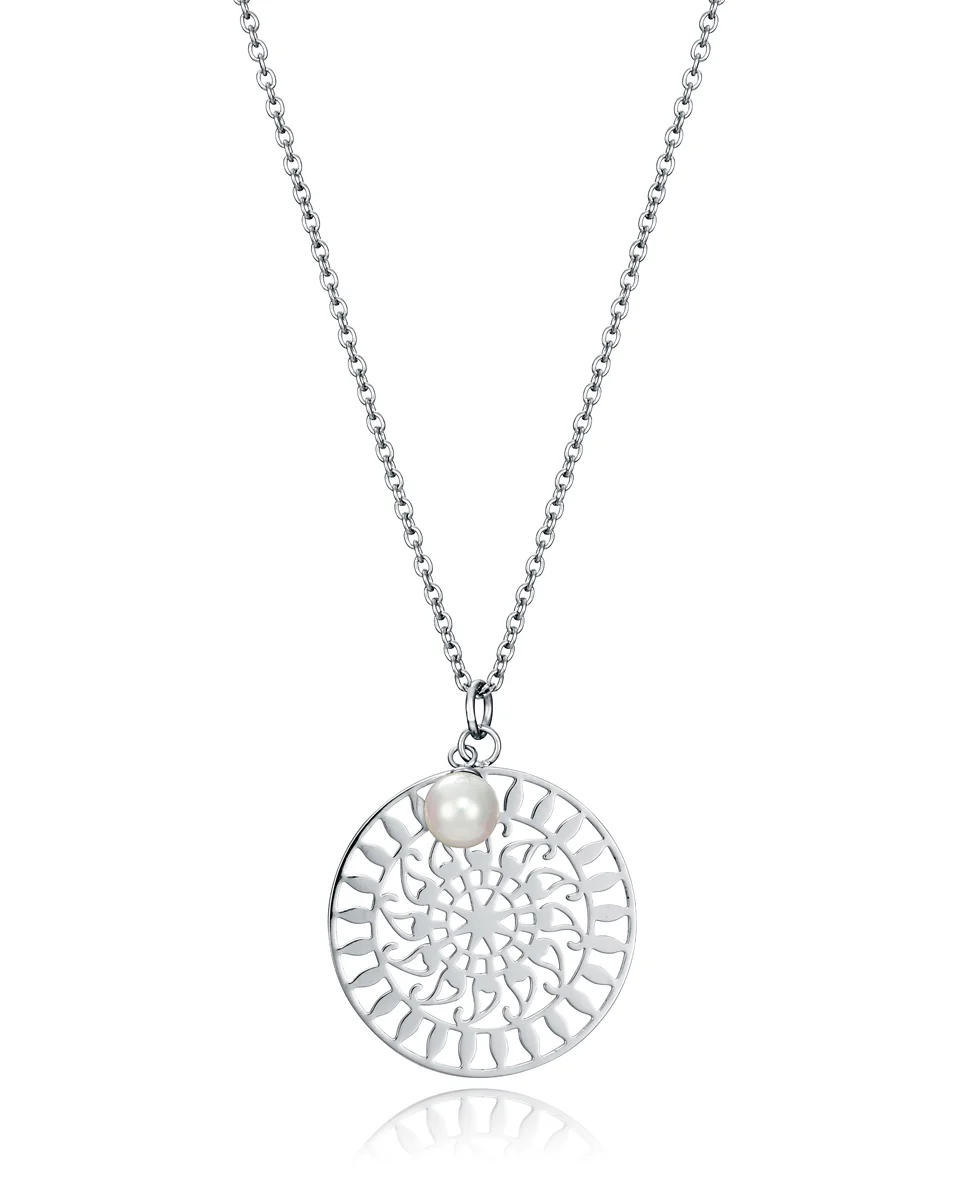 Collar Acero Medalla Calada Y Perla Sra Fn