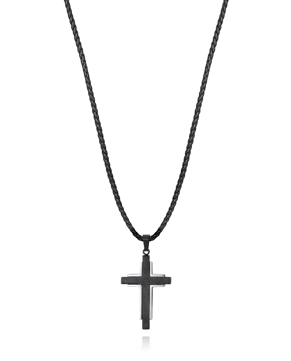 Collar Cruz De Acero Y Ipnegro Sr Fn