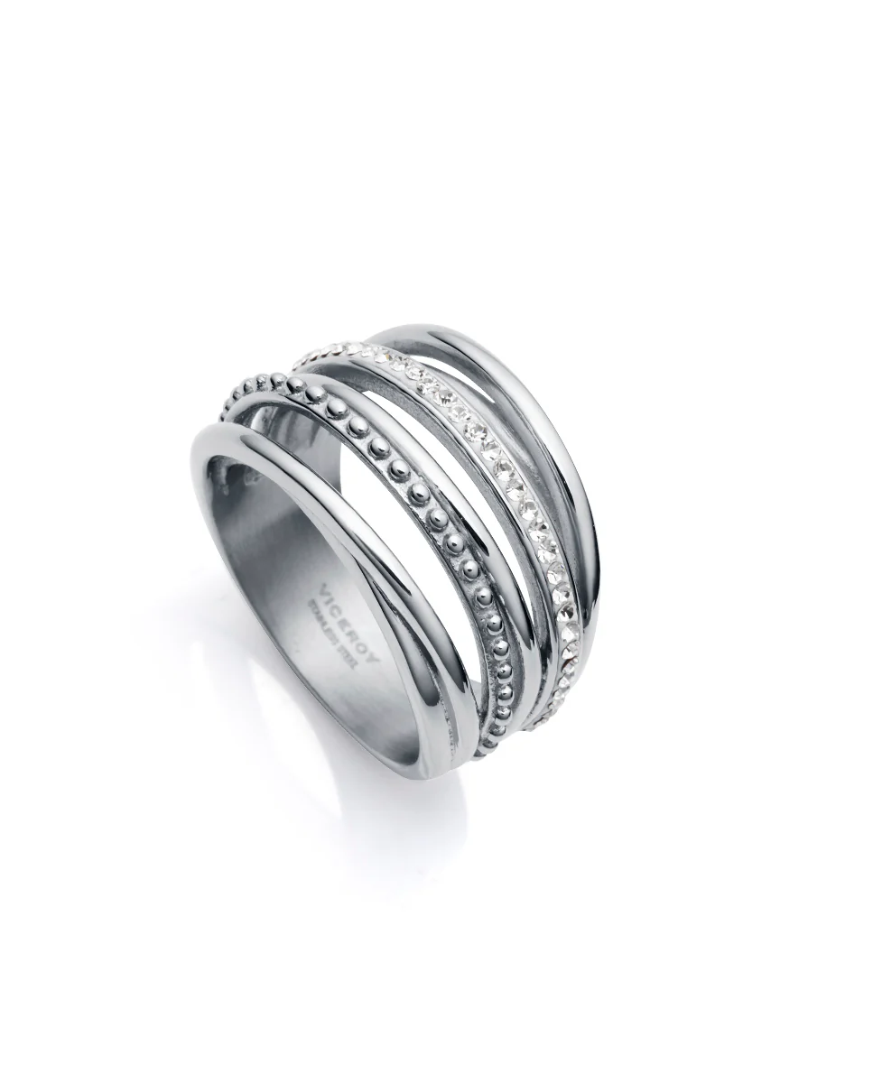 Anillo Multi Tira Acero Y Circonitas Sra Fn
