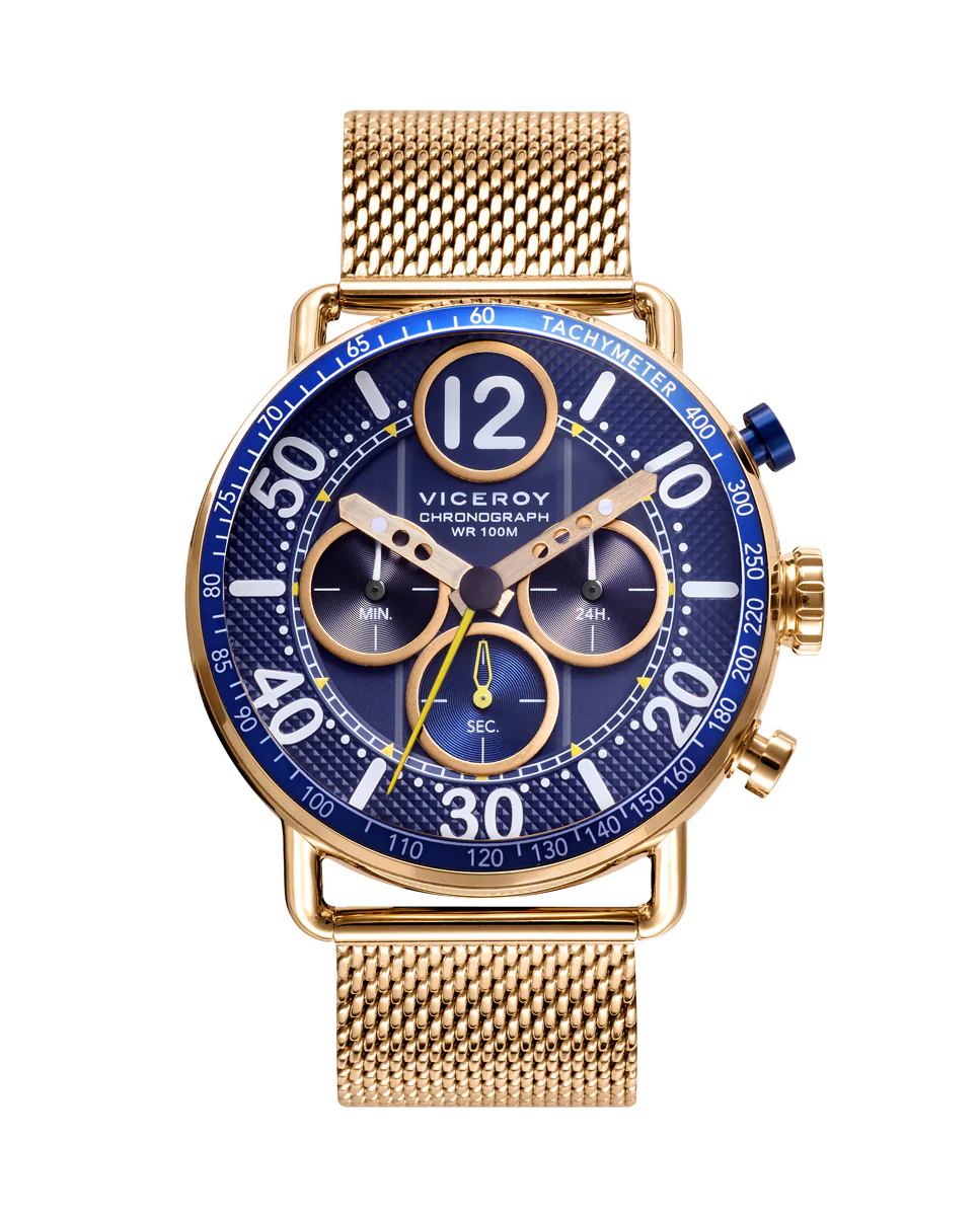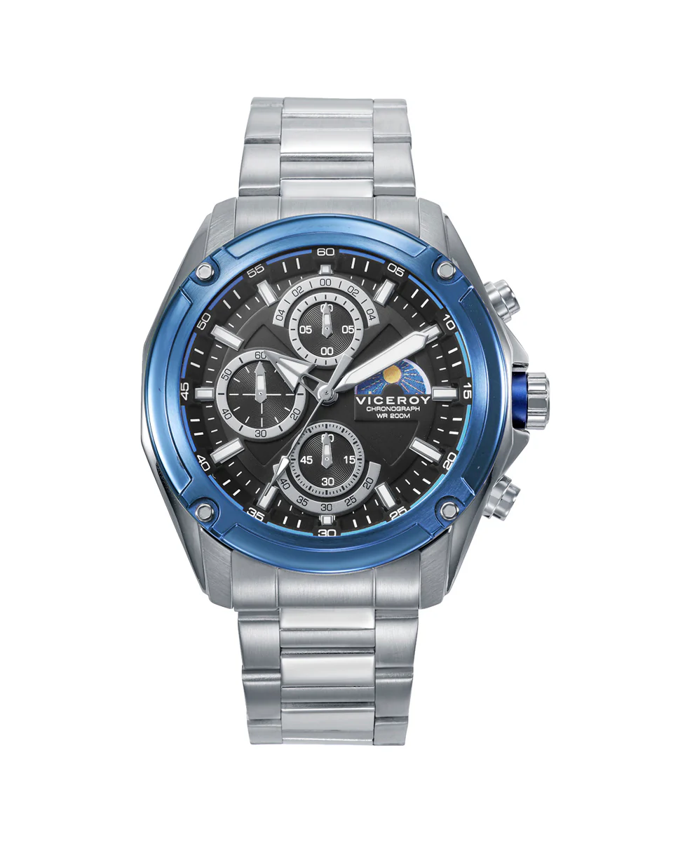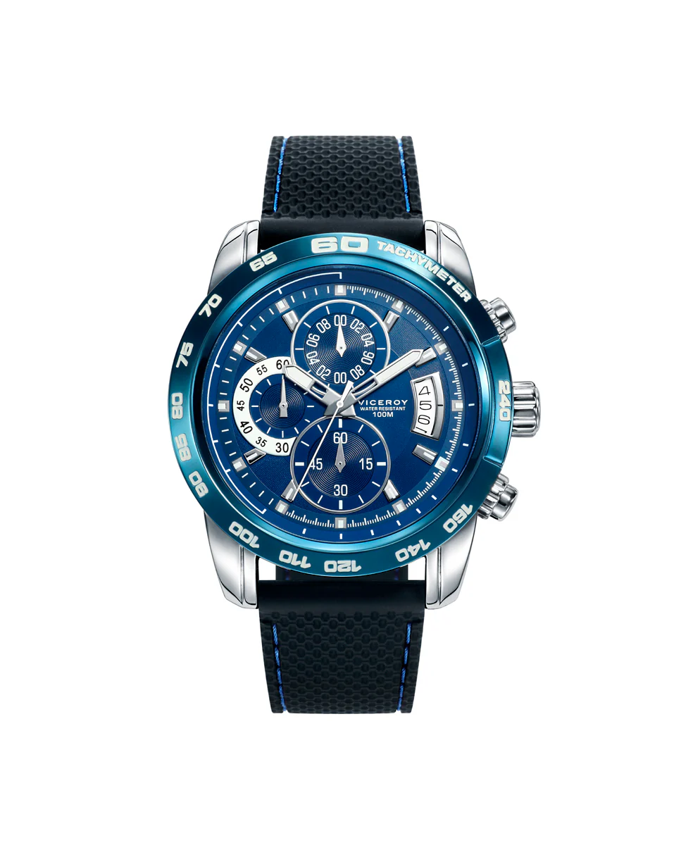 Crono Acero Ip Azul Y Negro Brazalete Sr Va