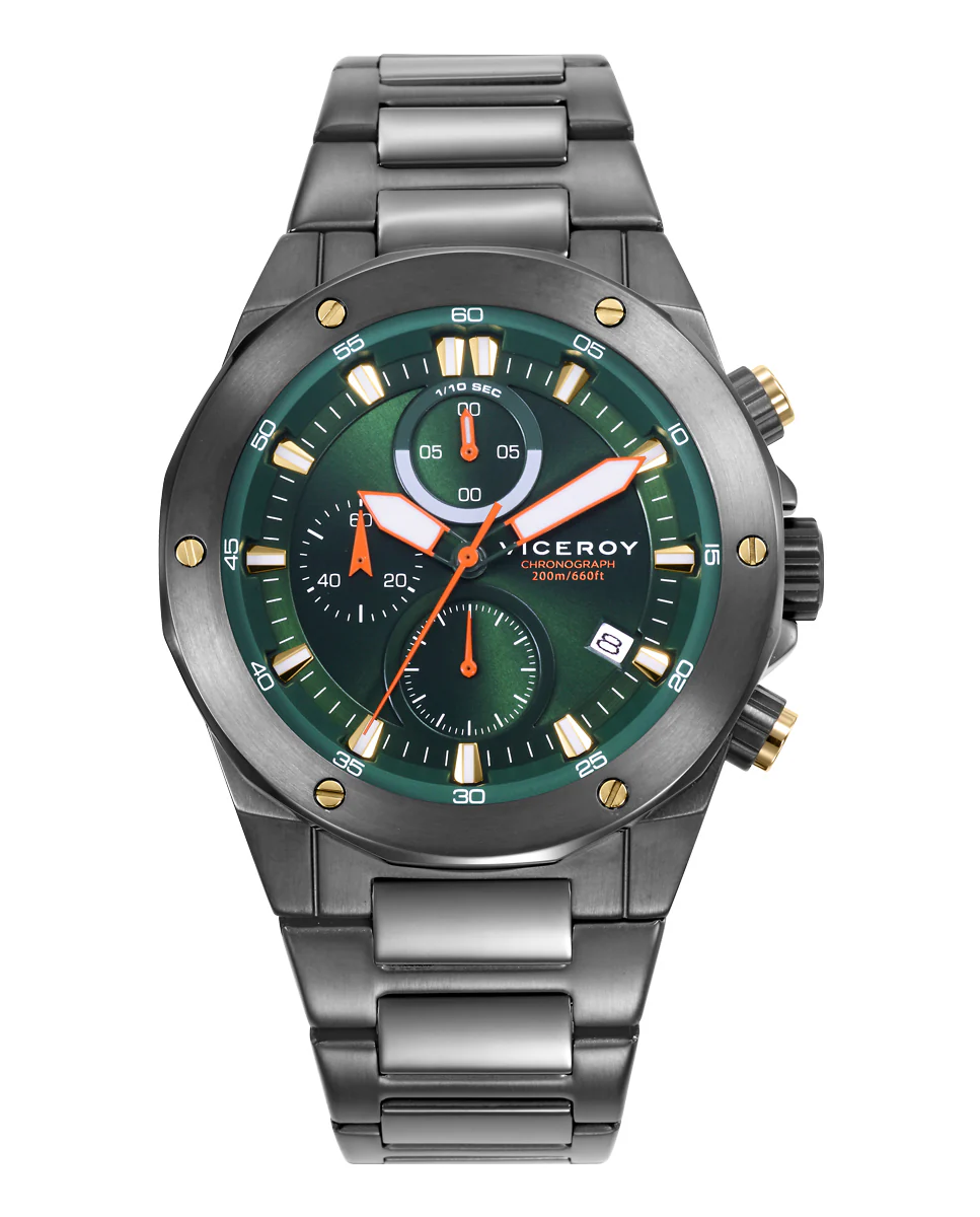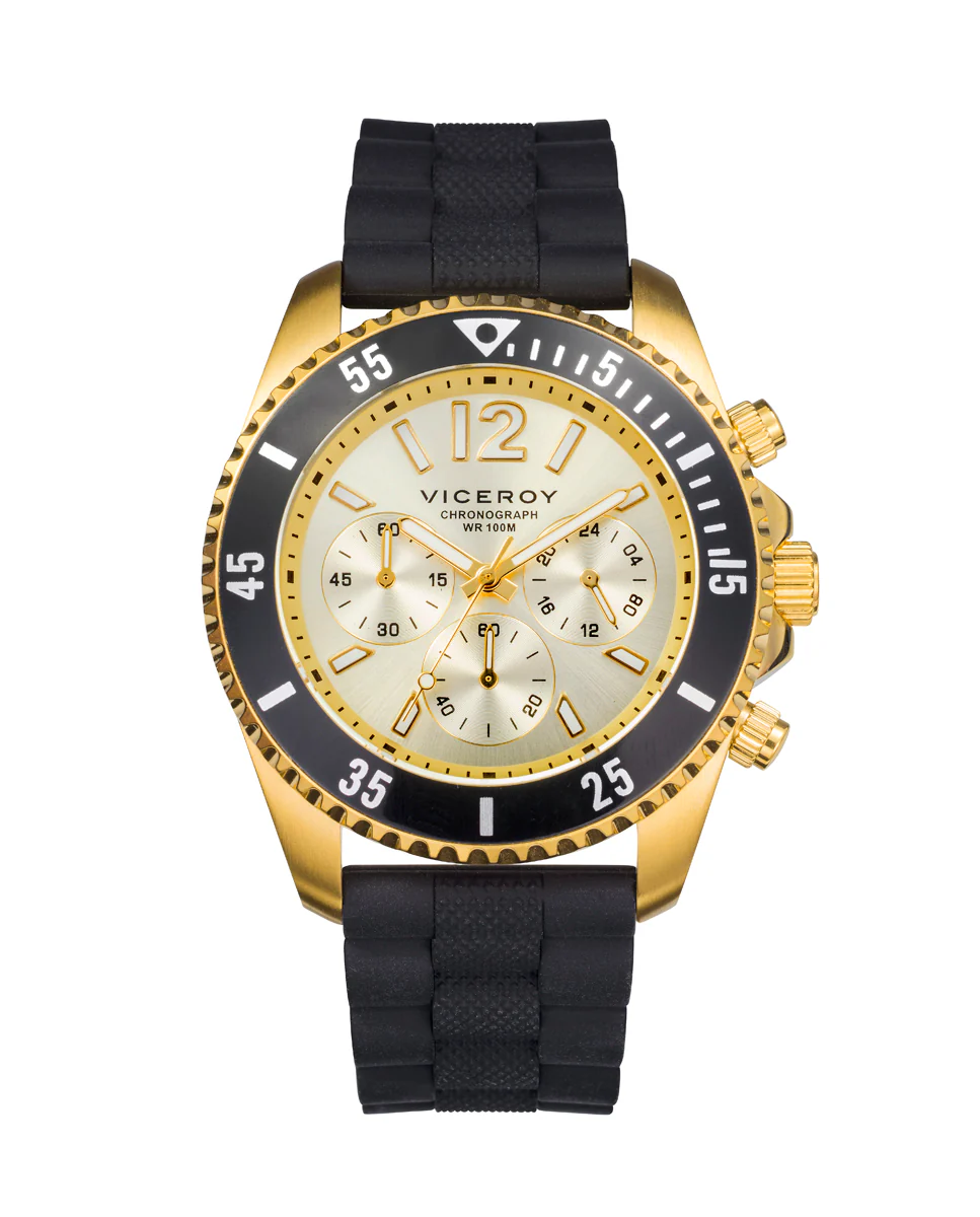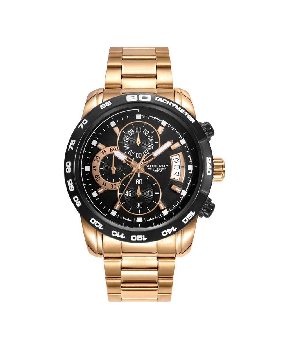 Crono Acero Ip Dorado Y Negro Brazalete Sr Va