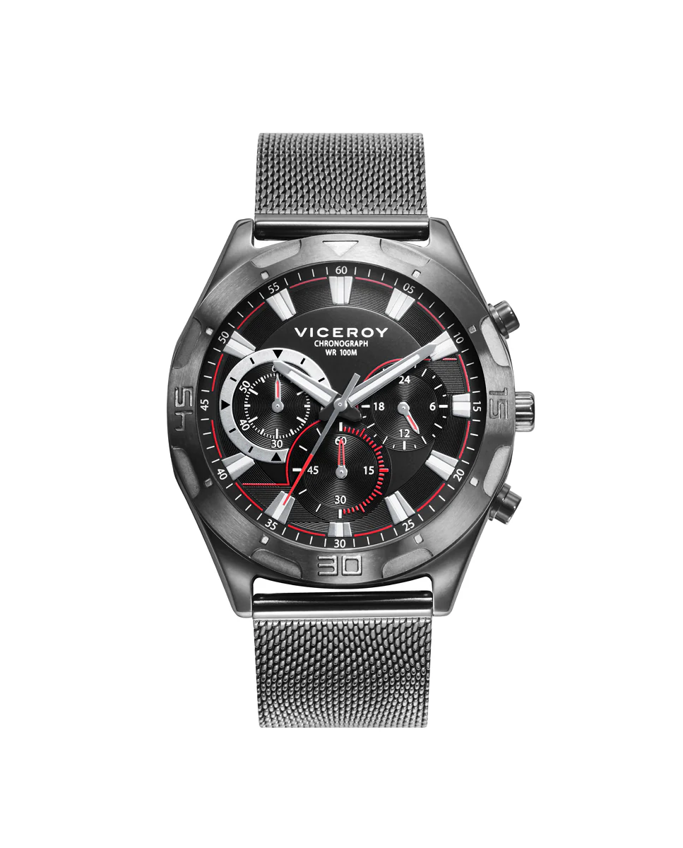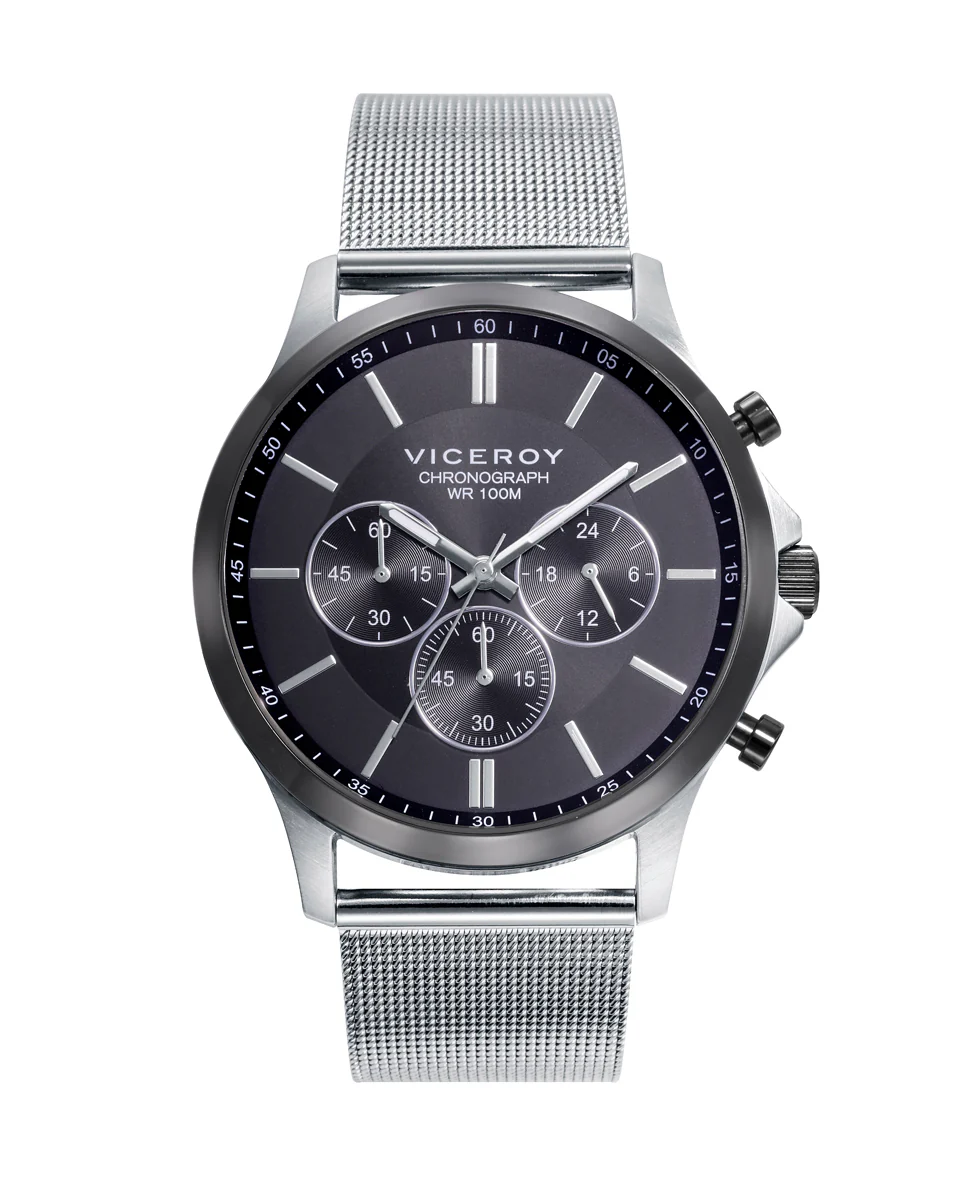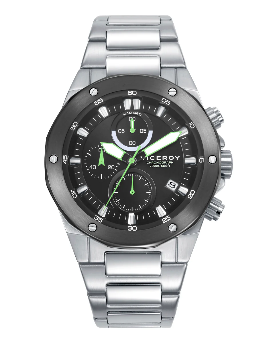 Crono Acero Ip Dorado Y Negro Brazalete Sr Va