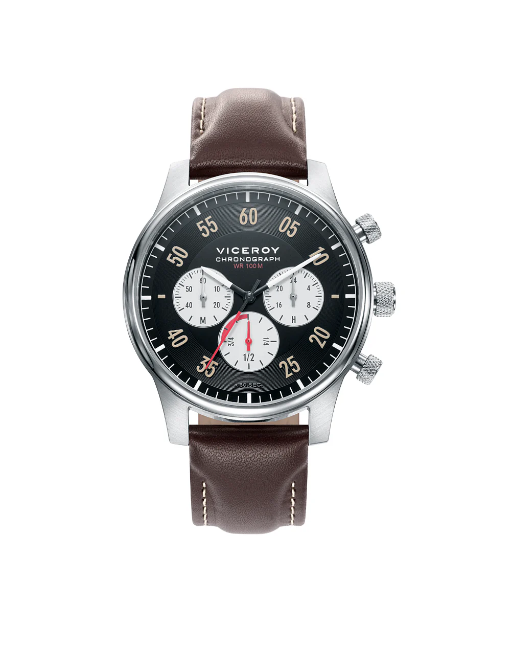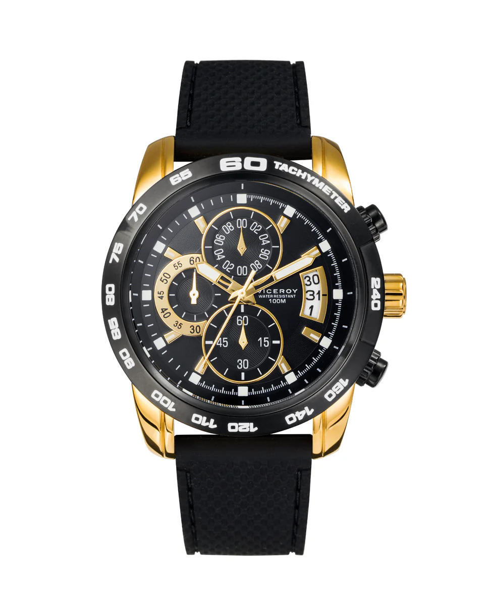Crono Acero Ip Dorado Y Negro Correa Sr Va