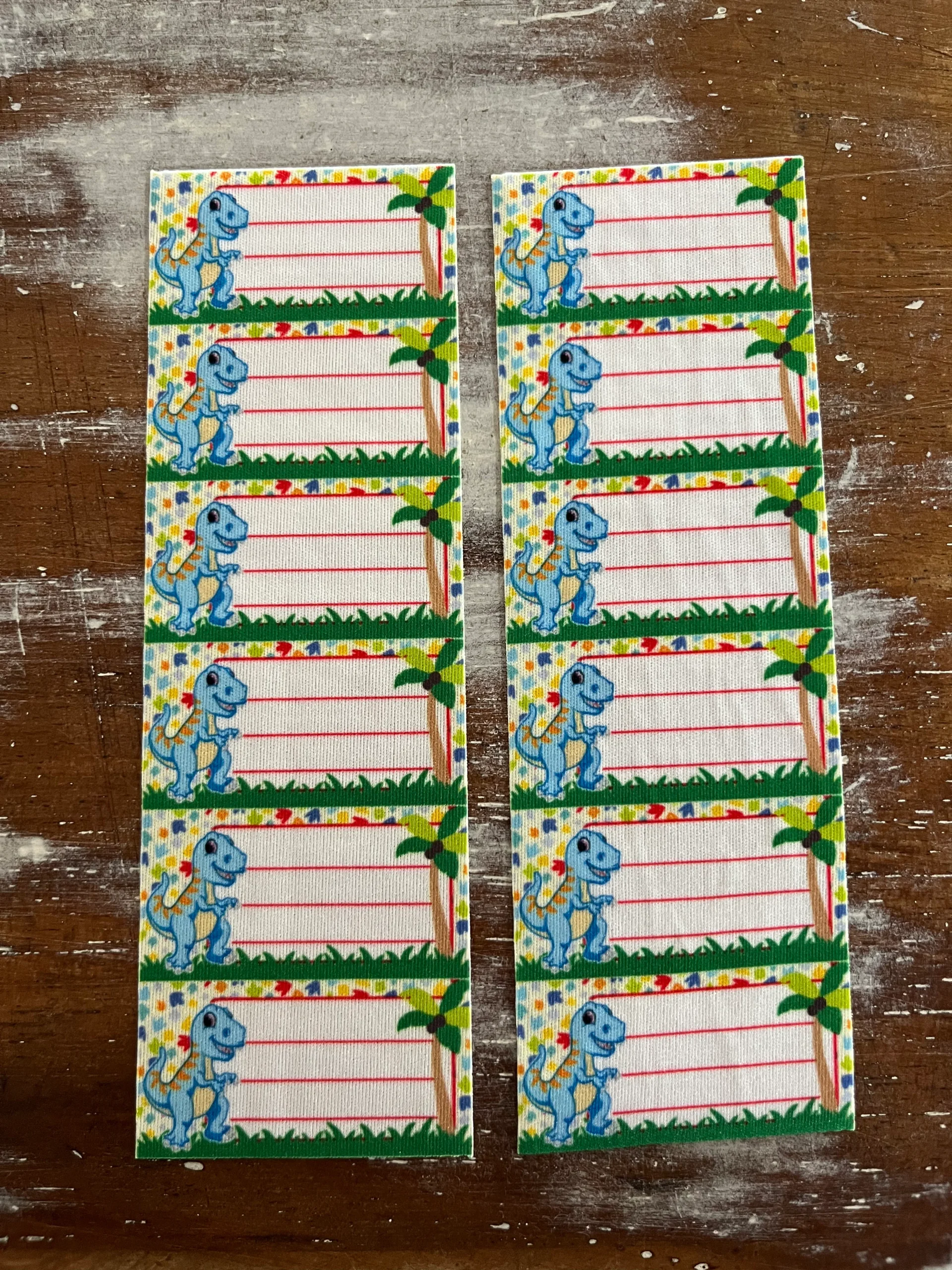 Etiquetas identificatorias termoadhesivas x 12 Dinosaurio