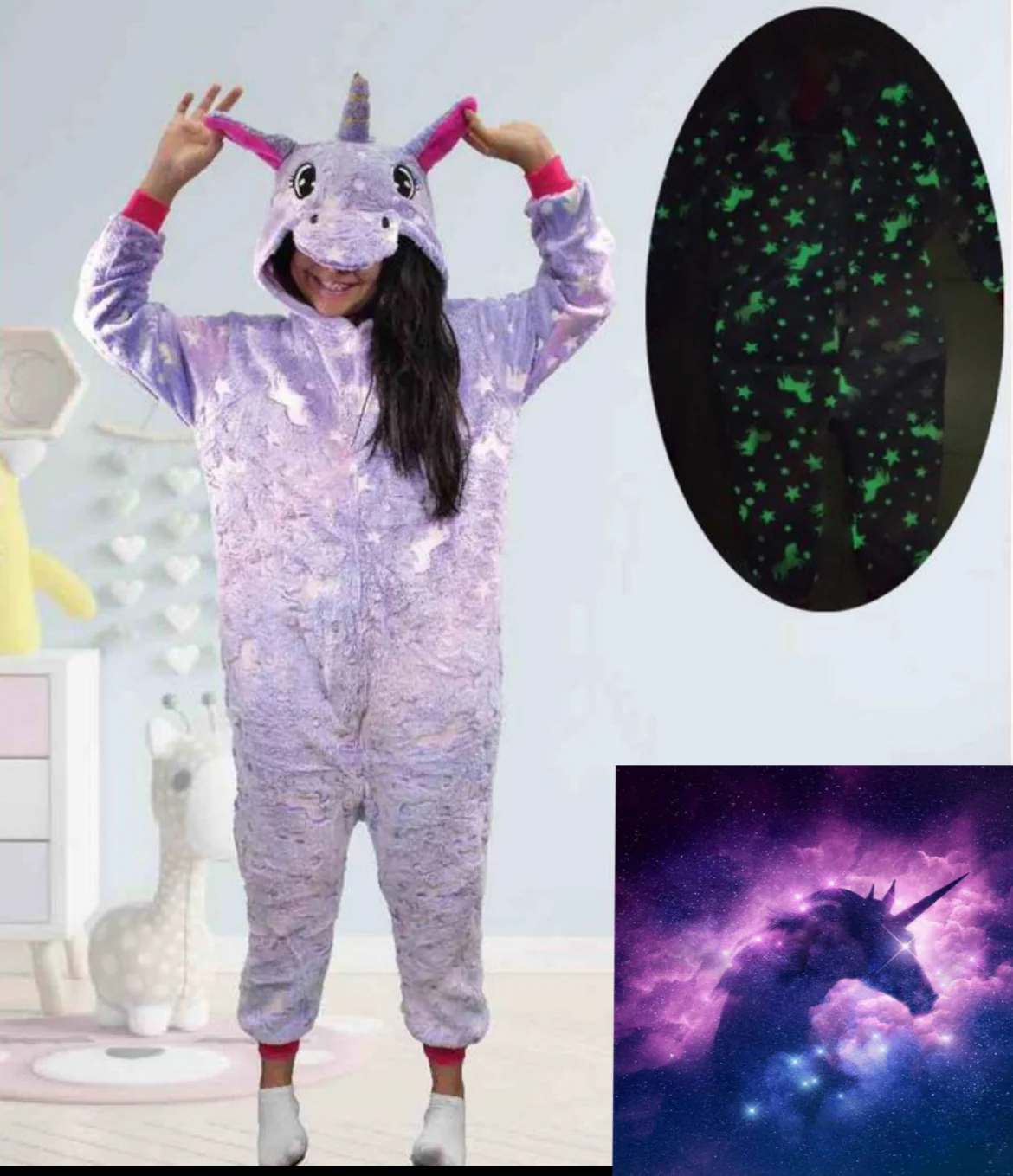 Pijama Enterito micropolar soft Unicornio Brilla en la Oscuridad