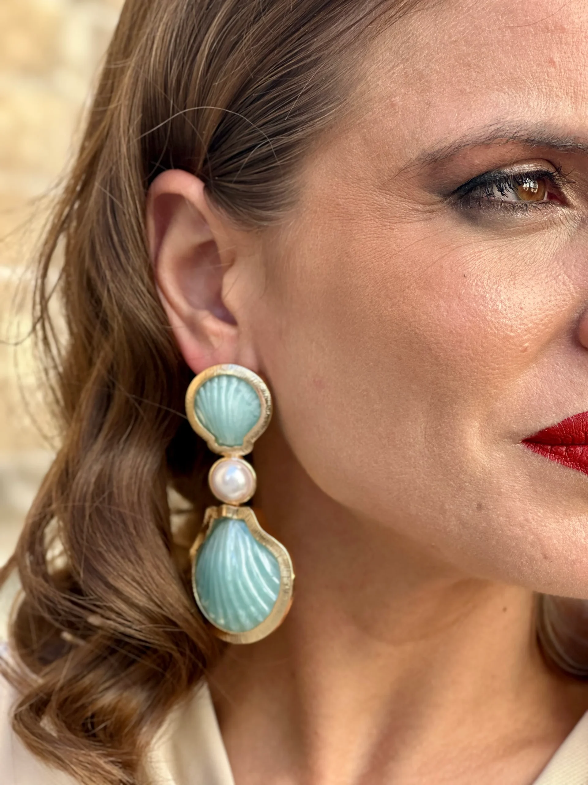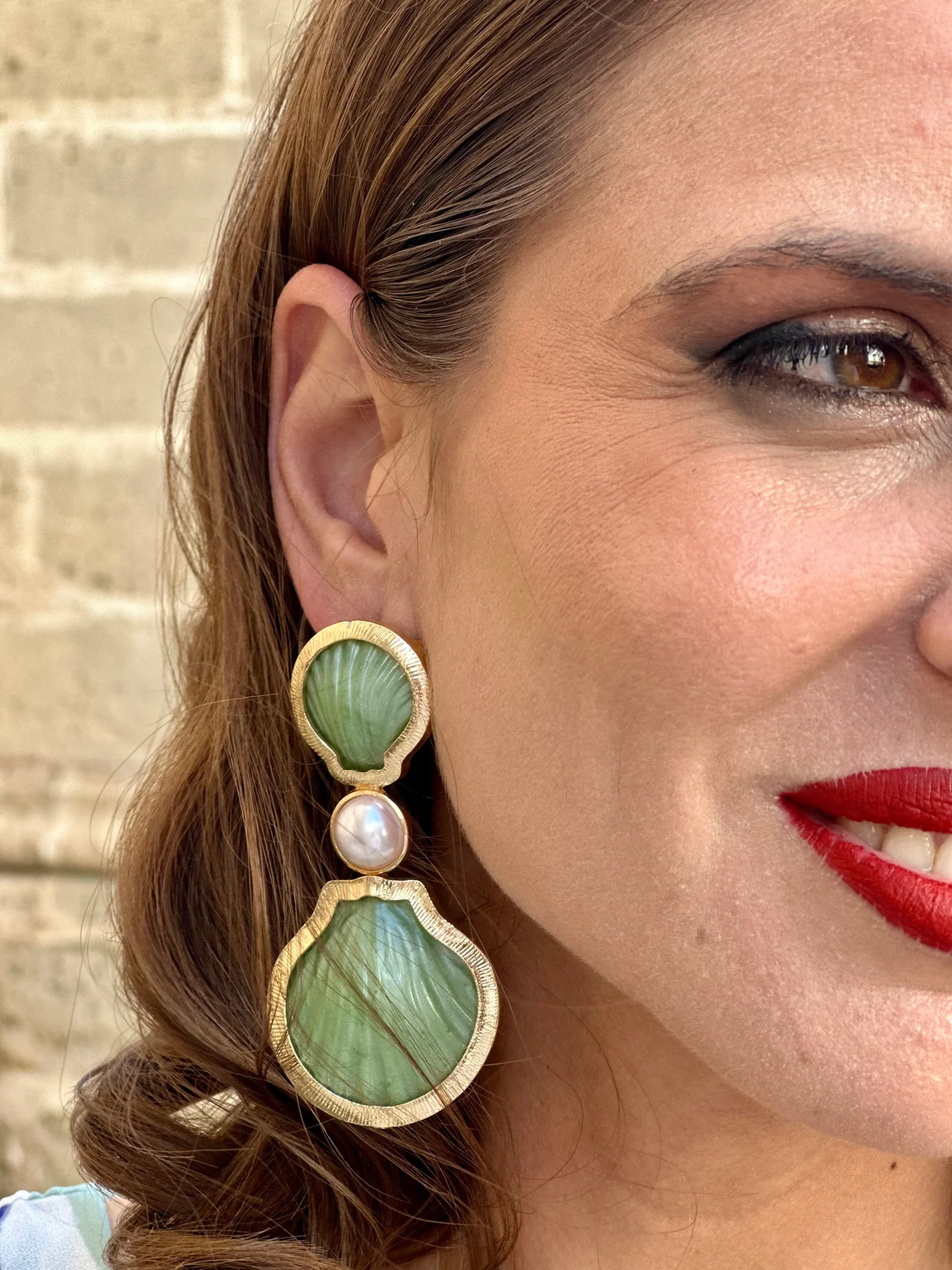 Pendiente Concha Verde Mar