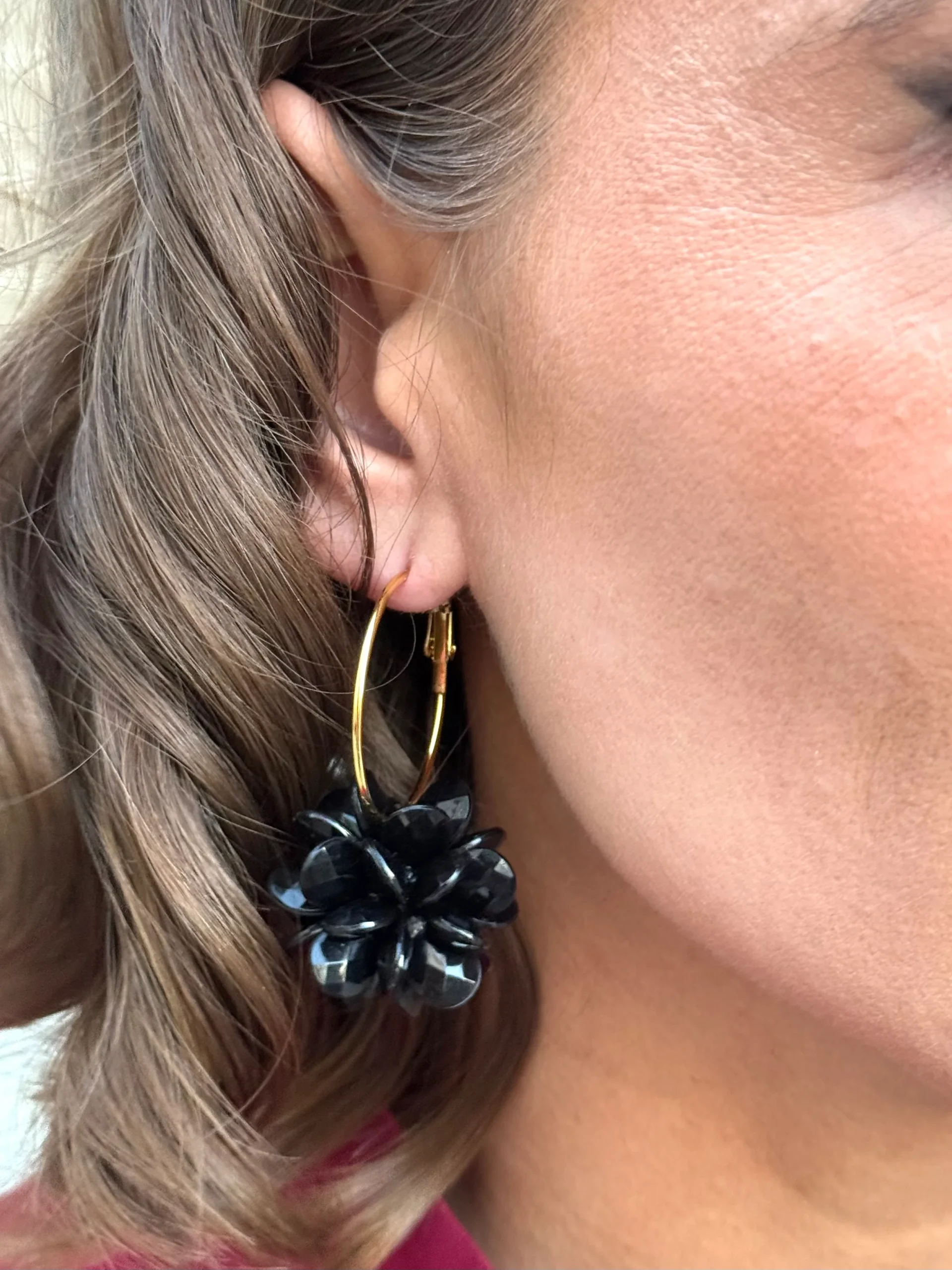 Pendientes Aro Flor Negro