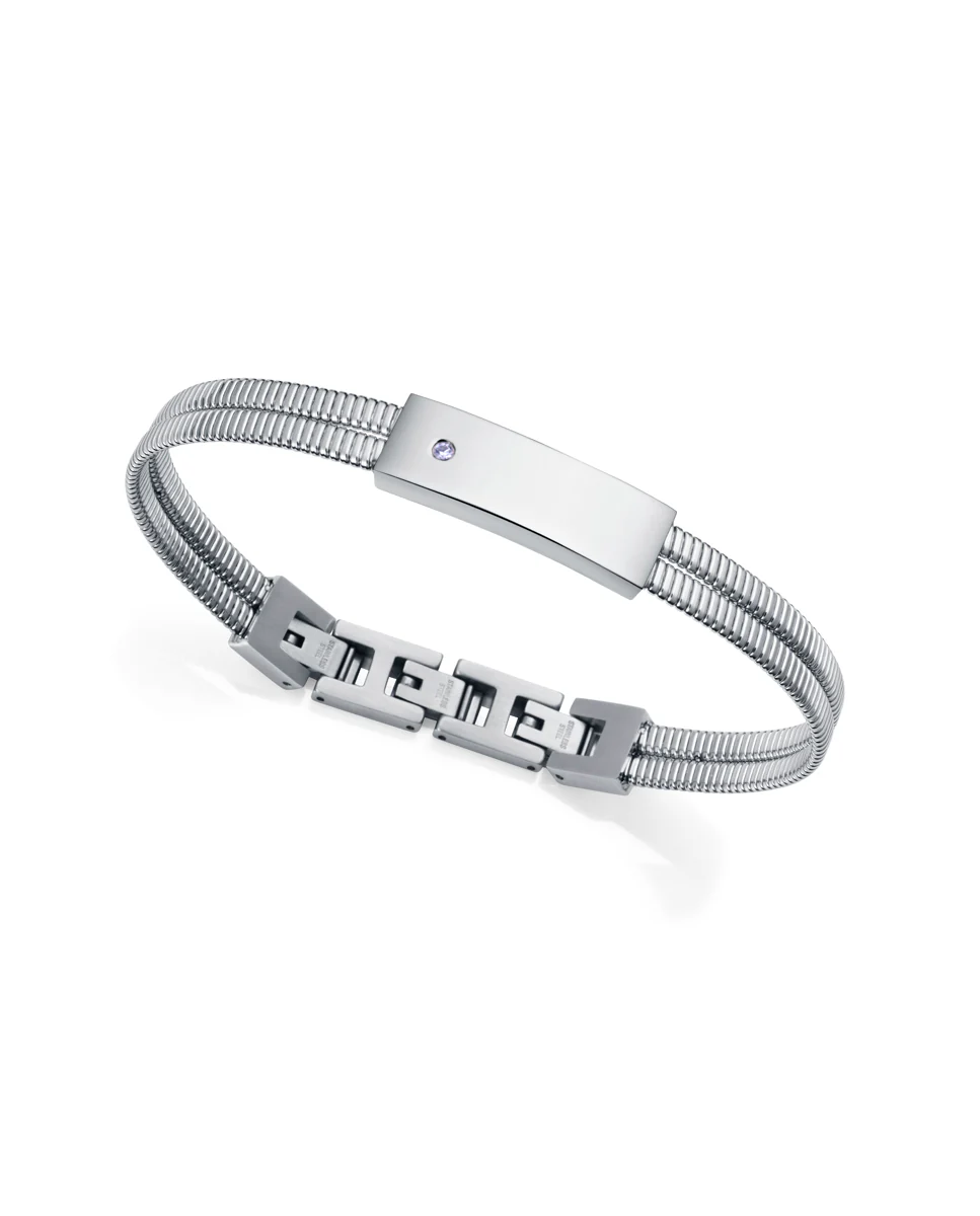 Puls Acero Correa Y Placa Piel Negra Sr. Fn