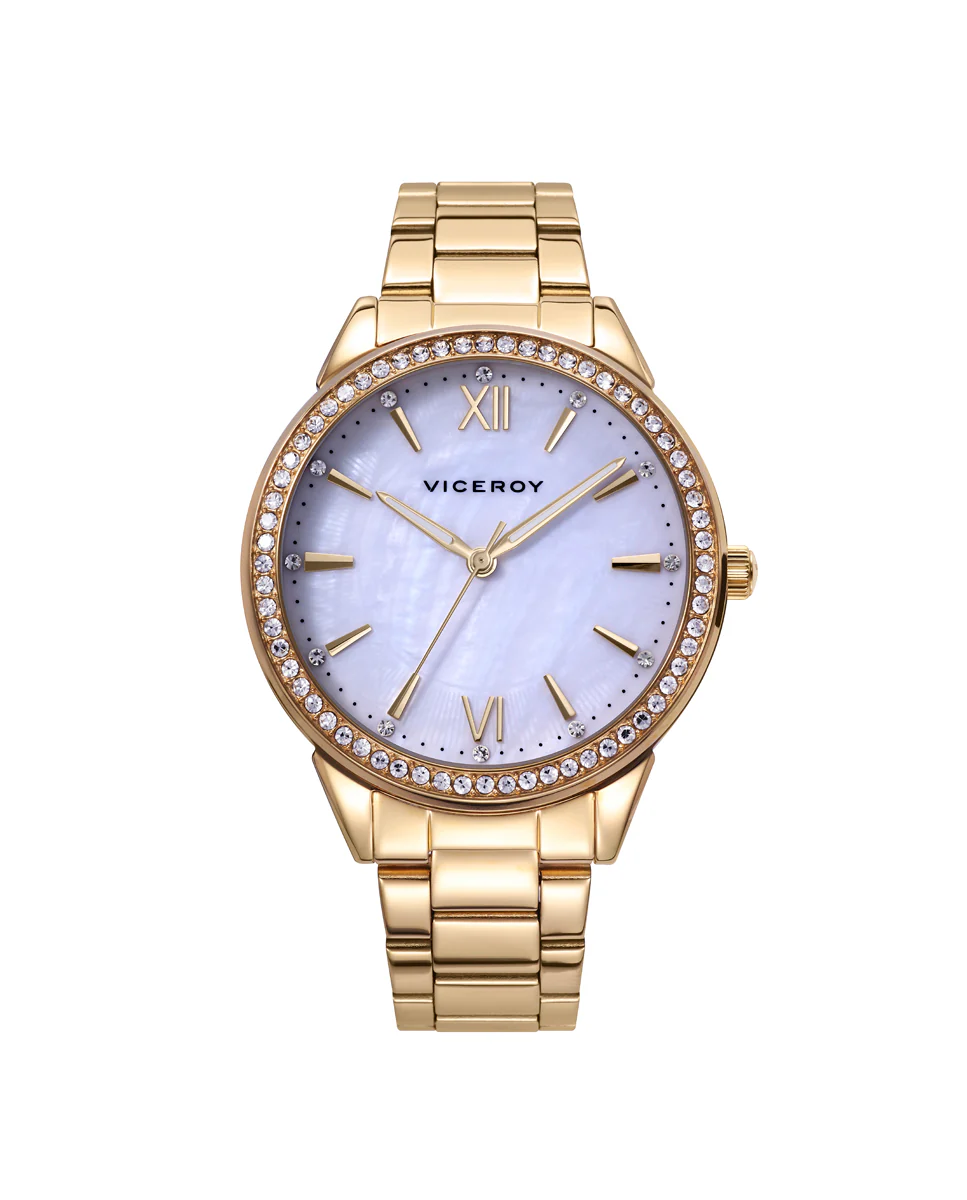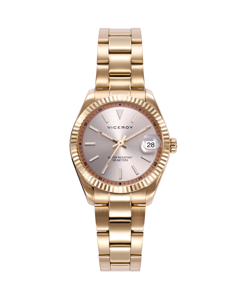 Reloj Acero Ip Dorado Brazalete Sra Va