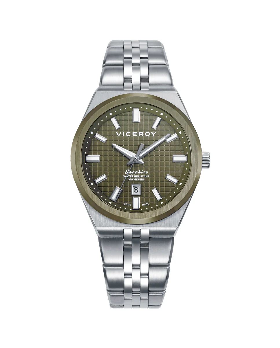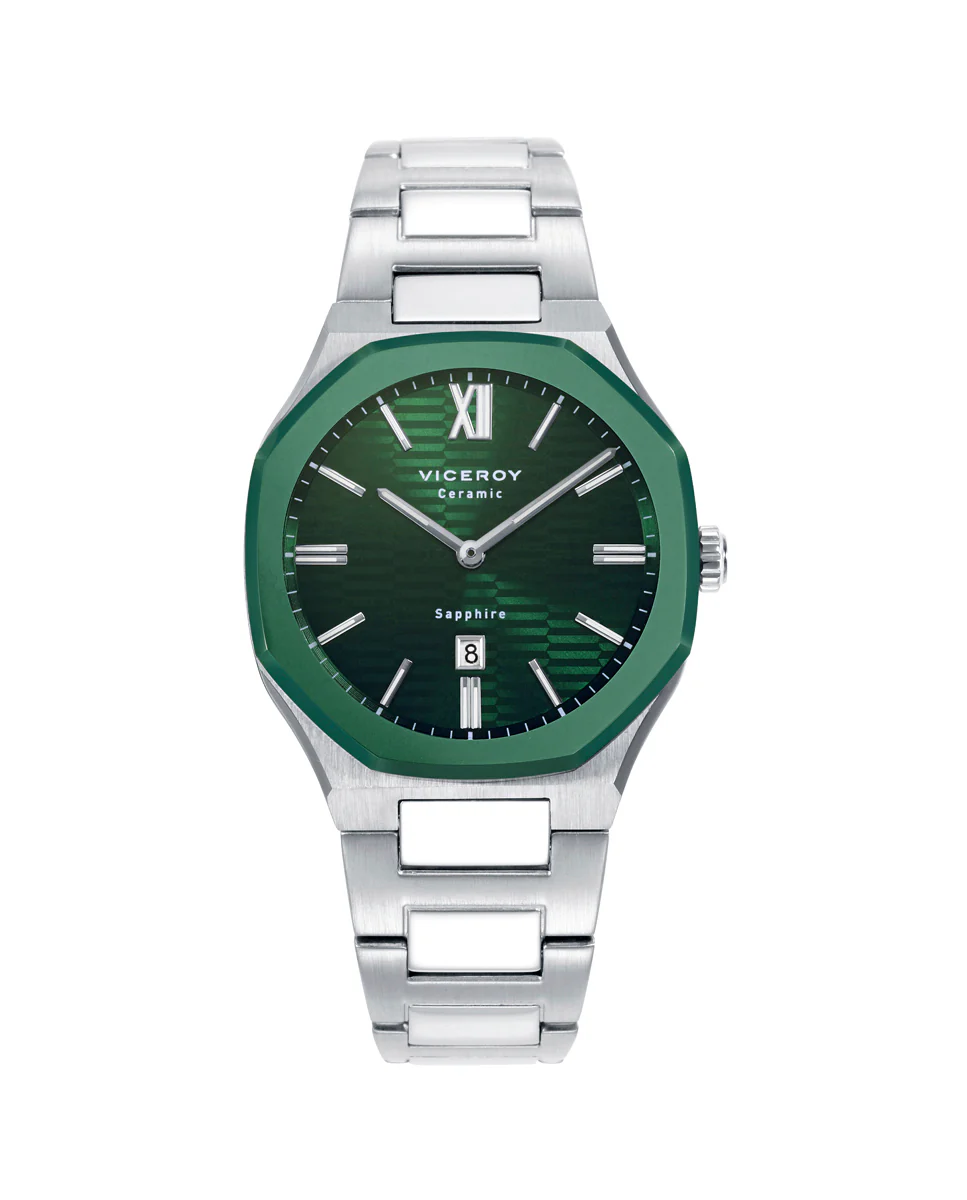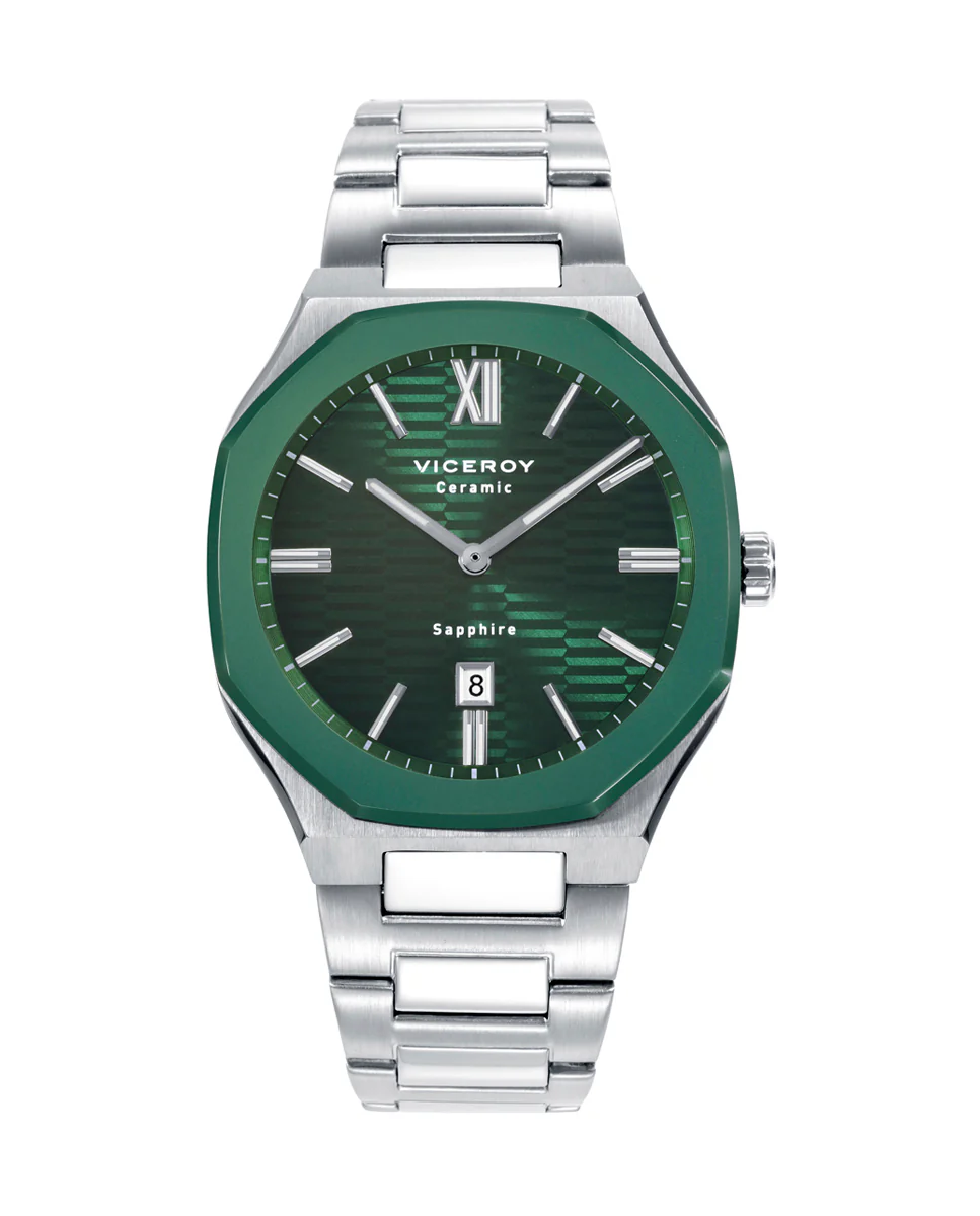 Reloj Acero Ip Verde Zafiro Brazalete Sr Va