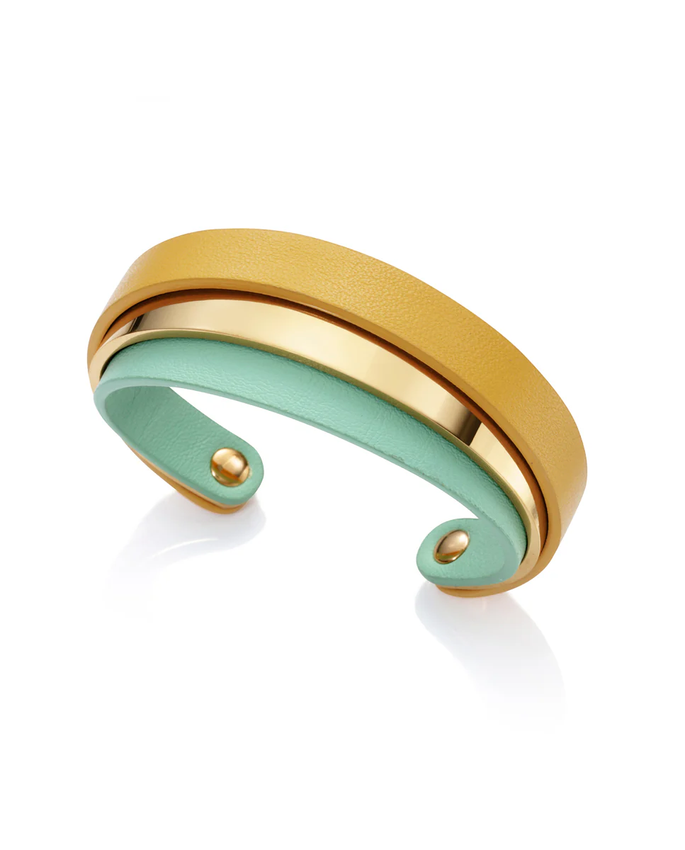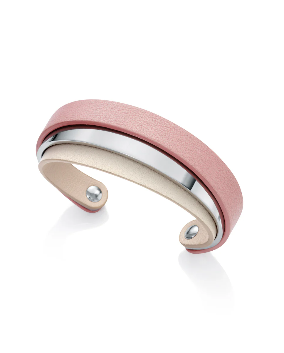 Brazalete Abierto Acero Y Doble Piel Sra Fn