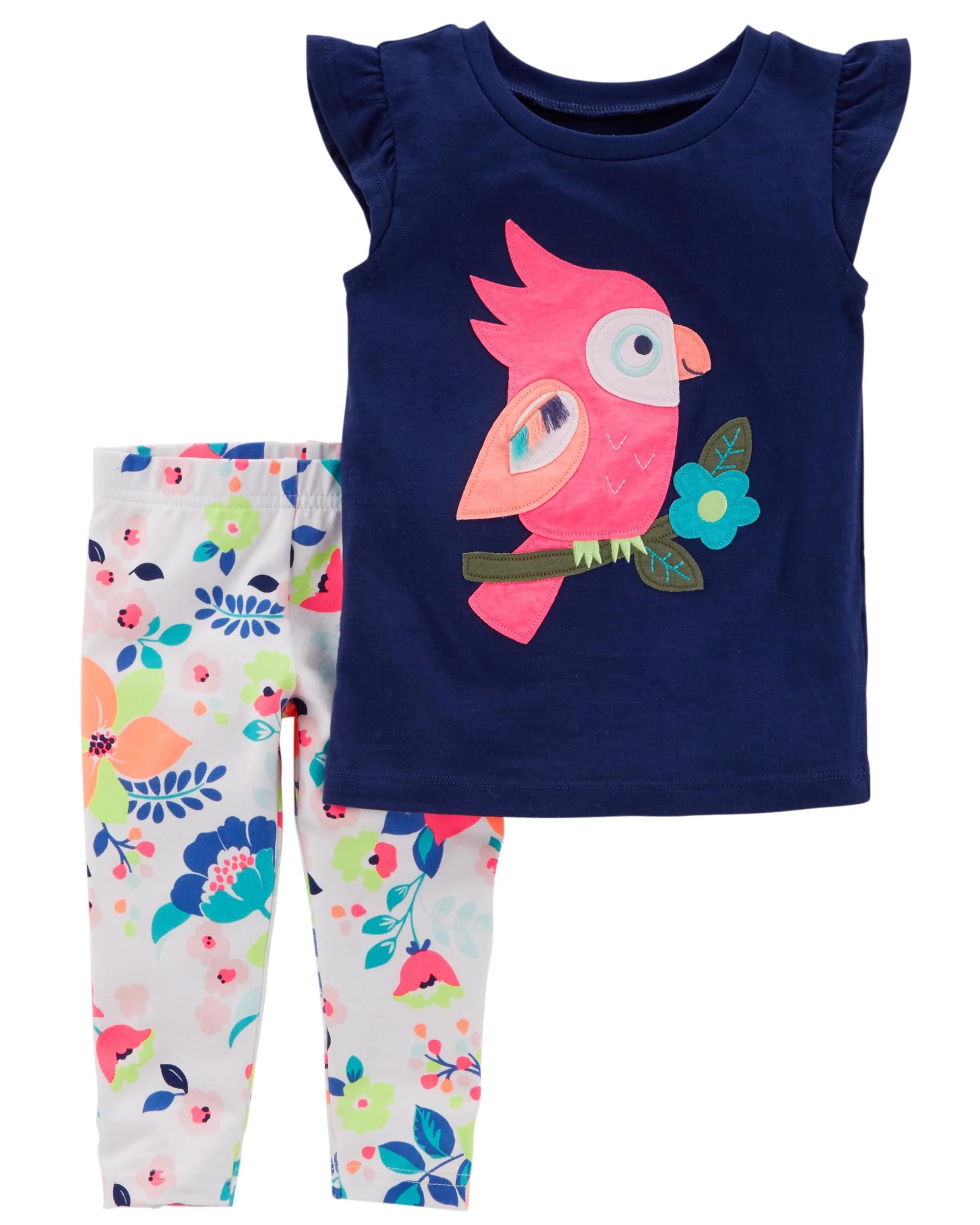 Conjunto CARTERS 2-Piece Owl Flutter-Sleeve Top & Floral Capri Legging Set
