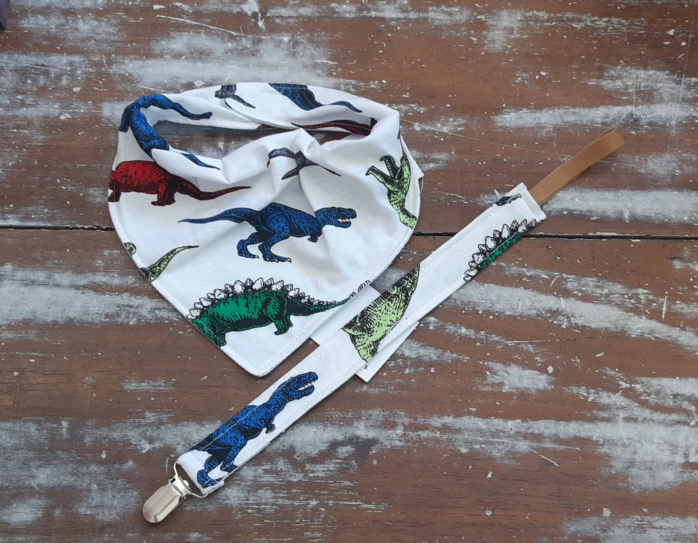 Set Babero Bandana ( algod贸n doble )y porta-chupetes