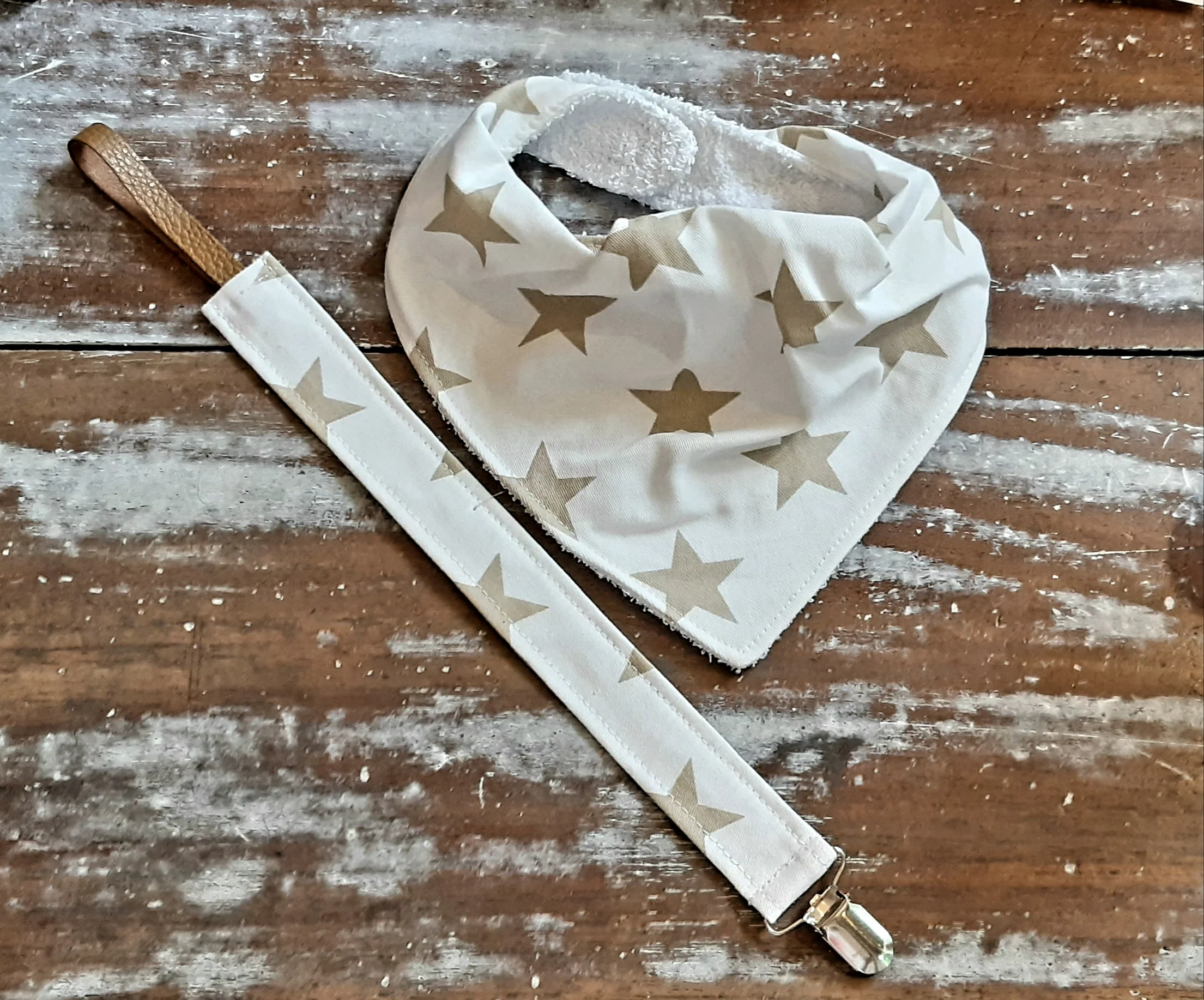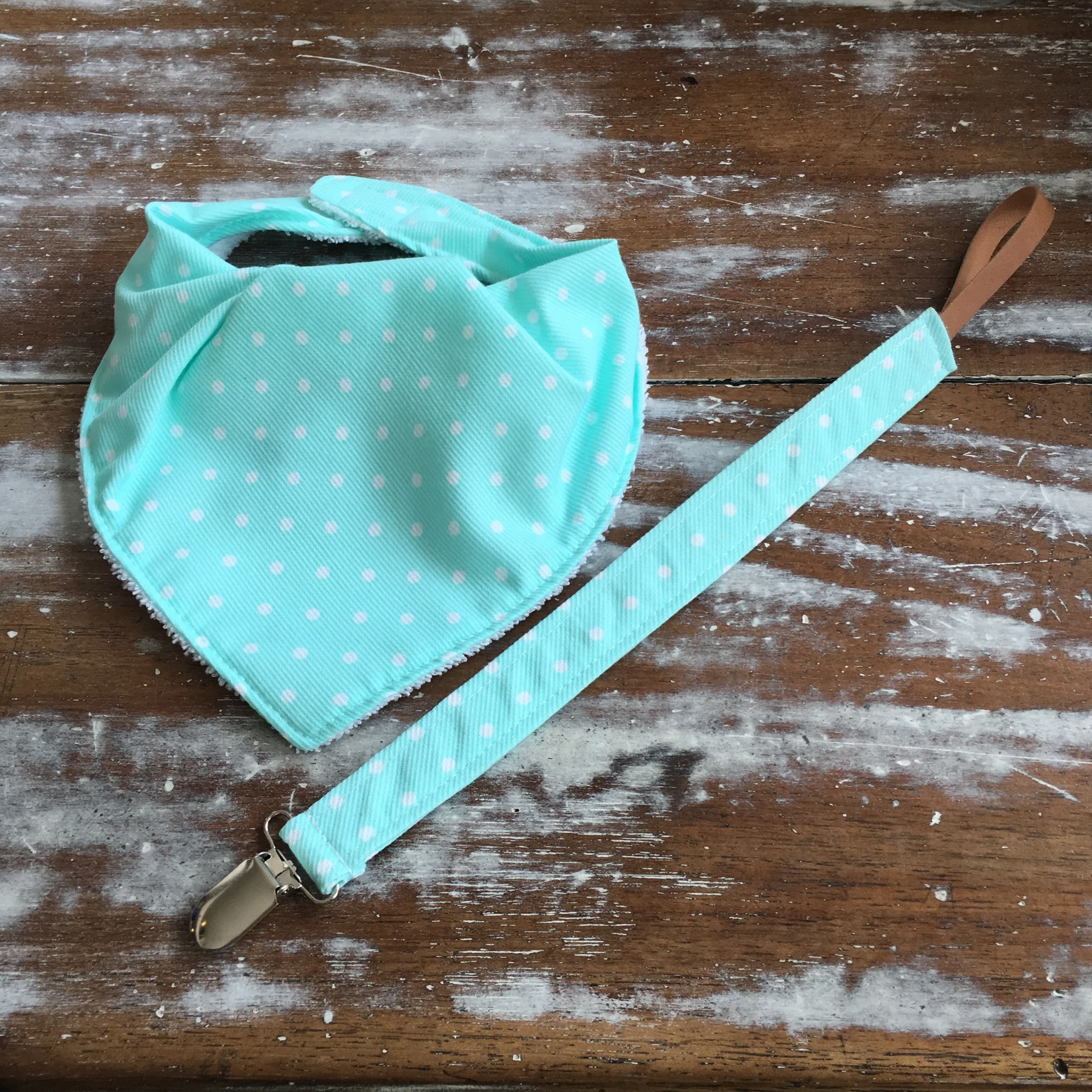 Set Babero Bandana ( algod贸n doble ) y porta-chupetes