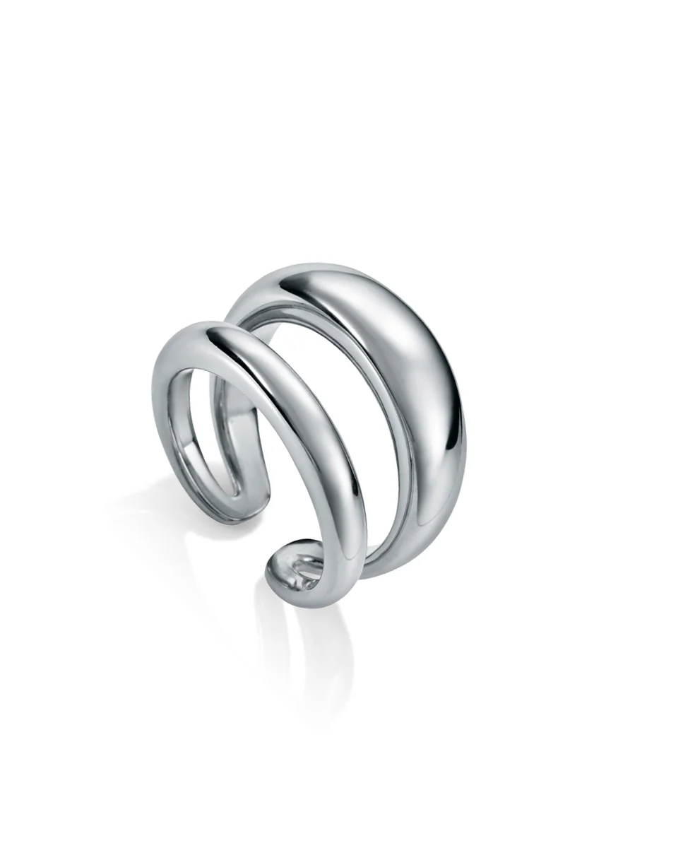 Anillo Acero Chapado Plata Doble Sra Fashion