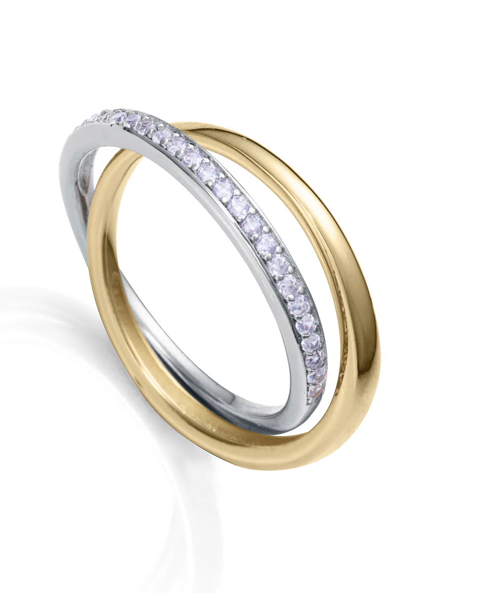 Anillo Plata De Ley BaƱo Oro Y Rod Circ Jwls