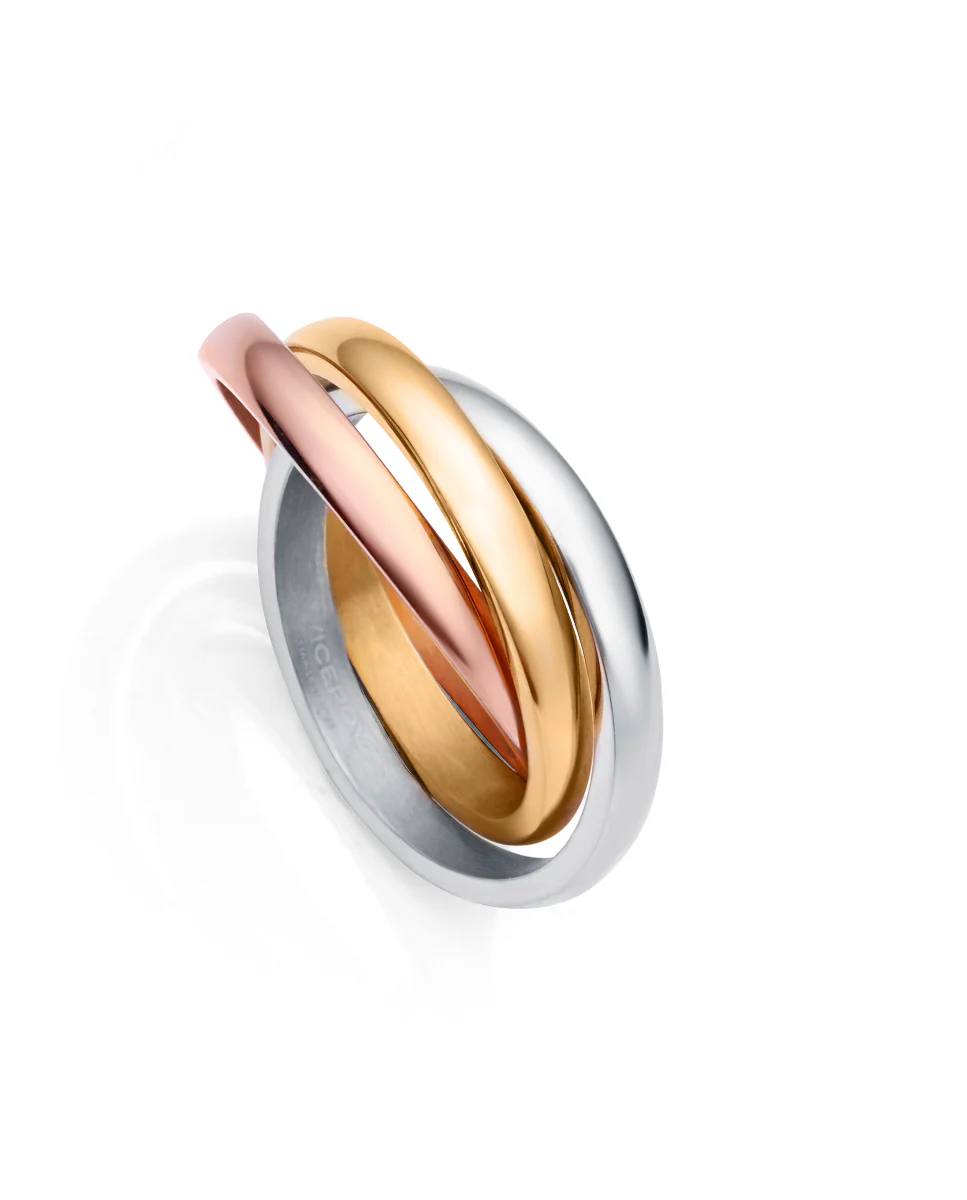 Anillo Triple Acero Ip Dorado Y Rosa Sra Fn